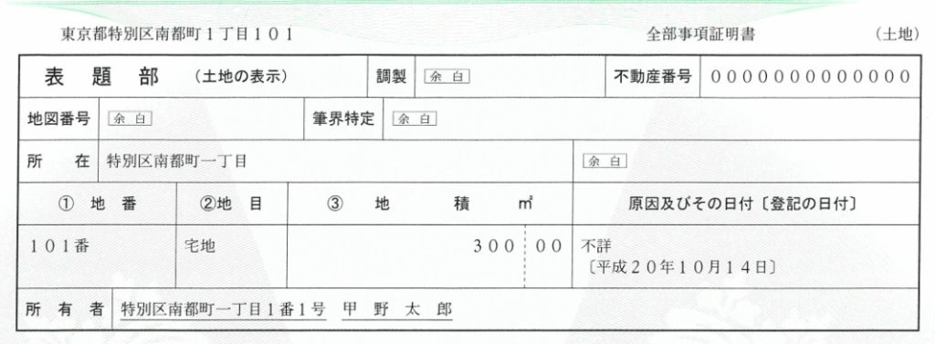 重要な点は、所在と地番と呼ばれる「住所」のようなものがあります。住所とは異なりますが、この番号があれば、どこにどの不動産があるのか確定されます。